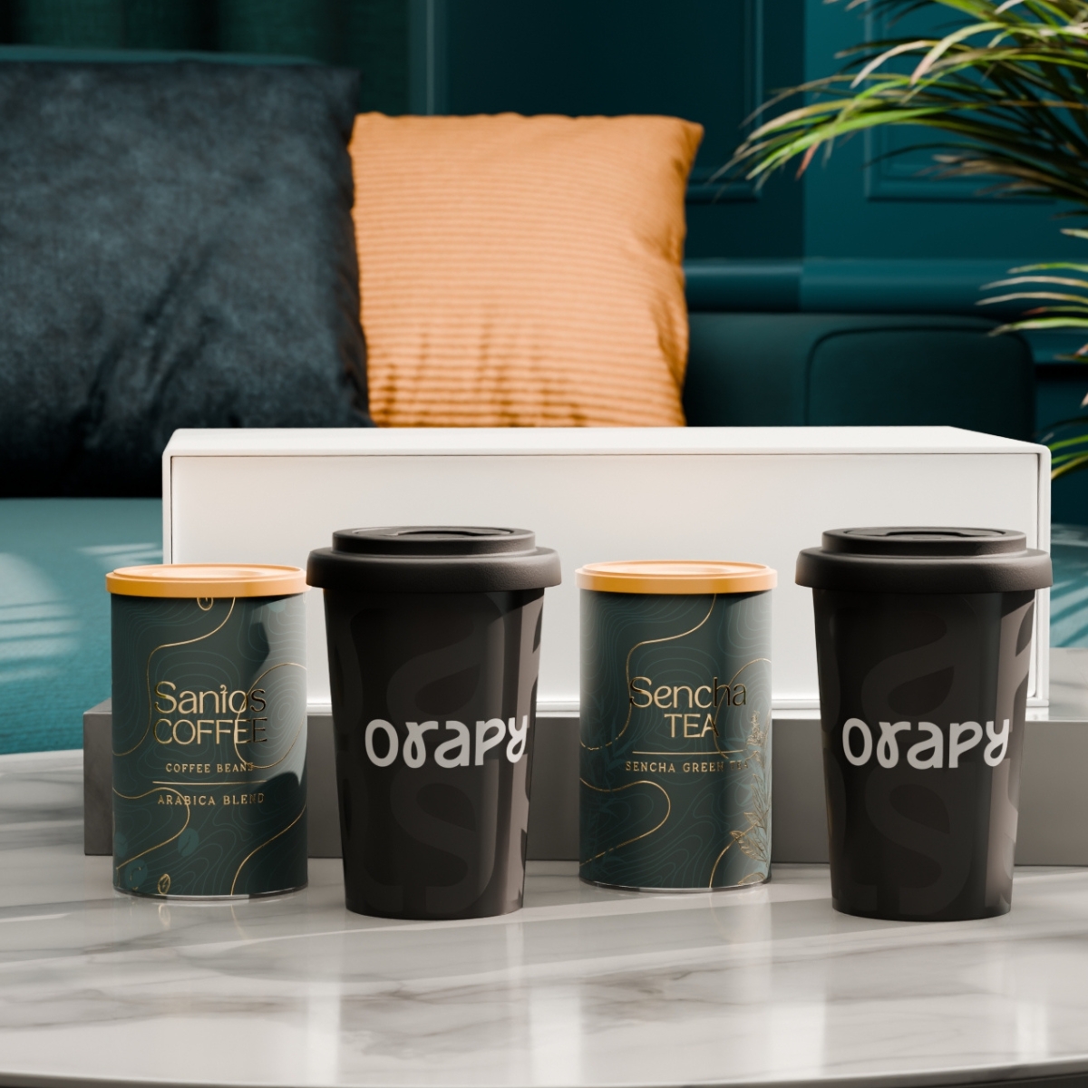 Das Set mit den mobilen Freedom-Bechern verbindet Mobilität mit subtilem Branding. Im Inneren befinden sich außerdem ausgewählter „Santos Coffee“ und „Sencha Tea“ in eleganten Dosen. Das Ganze ist in einer exklusiven, schneeweißen Verpackung mit Magnetverschluss verpackt. Der Deckel ist in folgenden Farben erhältlich: Weiß, Orange 021C, Cool Gray 7, Rot 200C, Marineblau 294C, Braun 4695C, Schwarz, Rosa 4064C, Blau 2144C, Eukalyptus 5493C, Desert Sand 2310C.